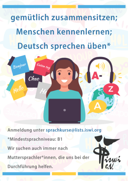 Wenn ihr nach einer Möglichkeit sucht, eure mündlichen Deutschfähigkeiten zu verbessern und mindestens ein Sprachniveau von B1 habt, dann kommt gern zu unserem Sprachentreff und lasst uns sprechen.